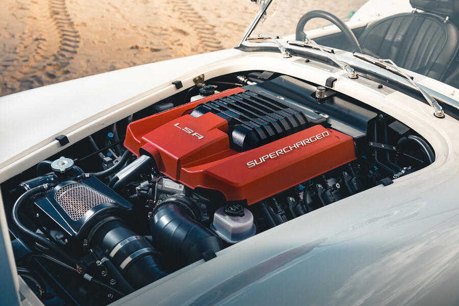While it looks largely like the ’60s original, there have been some significant changes for this latest iteration. For instance, like all Cobra models, the Superblower’s curvaceous body is actually formed from fibreglass rather than aluminium. Purists may be up in arms about this approach (it adds around 20kg to the kerb weight but saves tens of thousands on the list price), but the finish of the composite body is flawless, with lustrous paint and the sort of tight panel gaps that would shame some series production cars.