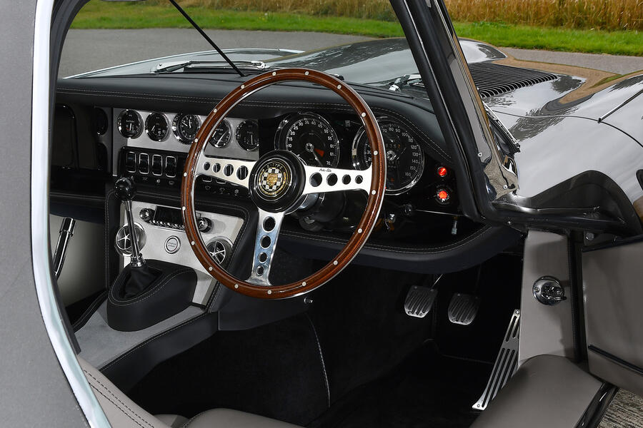 While the Unleashed’s exterior has been modestly restyled, the interior has had a much bigger makeover. The basic dash architecture is similar but while, in the 1970s, the industry was getting on board with textured mouldings, E-Type UK has reverted to piano black wood, aluminium and leather, all beautifully assembled. The air vents are cute directional aluminium things with an aerospace vibe and there’s a perfectly integrated stereo that looks period but has Bluetooth and DAB. There’s even air conditioning.