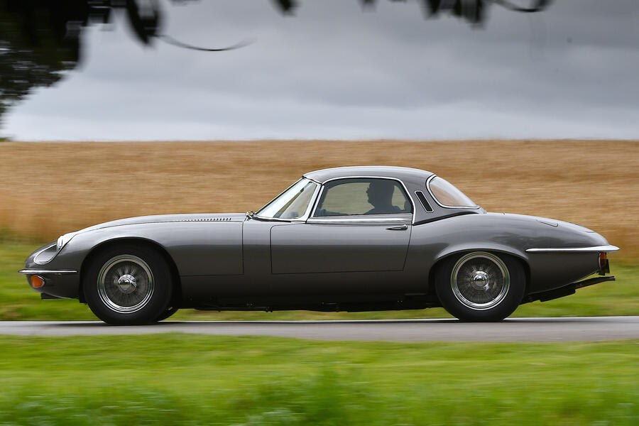 With the push of a button, the engine pours to life with plenty of culture but no dramatics. The clutch is a touch heavy and, in this example, the throttle has some stiction (though its makers plan to sort that before the car heads to its customer the day after our drive). Pedal spacing and heights are good, though, and the gearshift is lovely – long but ever so smooth. The steering, power assisted, is light and three turns between locks, but also silkily smooth. The vibe is very much cruiser, which is what I read the Series 3 had become, a decade after the E-Type’s sensational launch at the 1961 Geneva motor show.